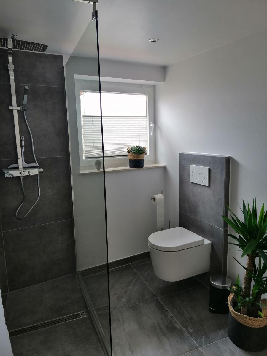 WC, Dusche, Haartrockner, Handtücher, Tageslicht, Handtuchheizkörper