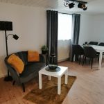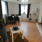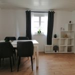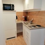 - Ausstattungen: Couchtisch, Esstisch mit Sitzgelegenheiten für 3 Personen, Geschirr, Besteck, Gläser, Küchenutensilien, Kleiderschrank, Küchenzeile mit Kühlschrank, Mikrowelle mit Heißluftfunktion, Regal, Sat-TV, Senseo Kaffeemaschine, Toaster, Wasserkocher